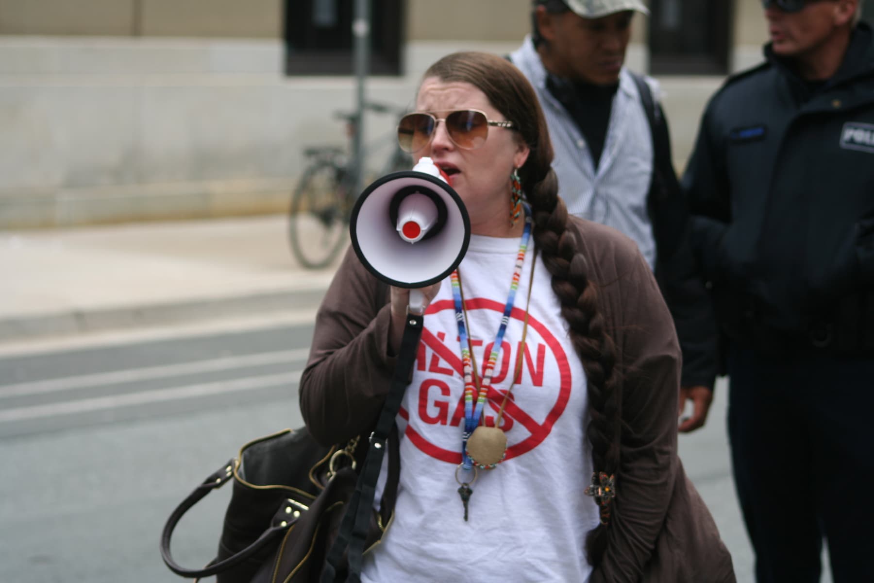 “Our message is ‘stop Alton Gas now.’ The permits have no jurisdiction with the Mi’kmaq, we want those permits to be cancelled, we want Alton Gas to pack up and leave,” Michelle Paul told the crowd. Paul is one of the many people who have been present at the proposed brine release site along the Shubenacade River on a daily basis.