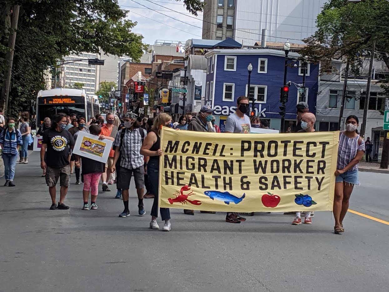 The rally was organized by the Halifax-Dartmouth & District Labour Council and the Halifax Workers Action Centre.